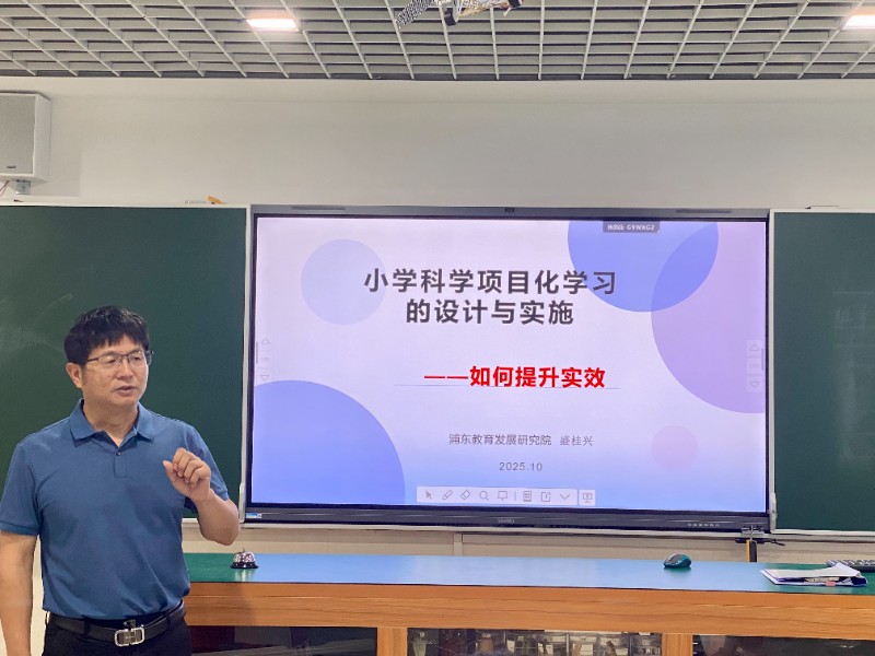 近日,浦东教育发展研究院盛桂兴老师围绕“小学科学项目化学习的设计与实施 —— 如何提升实效”主题开展专题讲座,与我校科学教师一起共同探索项目化学习在科学课堂的落地路径。同时,杨惠琴老师主持的中高工作坊也同步围绕该主题开展研讨,形成 “专家引领 + 同伴互助” 的深度学习氛围。