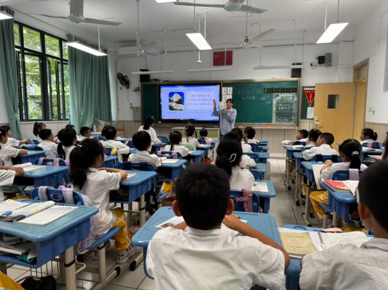 活动伊始,由黄伊颖老师和丁思懿老师分别执教《蟋蟀的住宅》《黄山奇石》两堂研究课。黄老师以课题中的“住宅”一词入题,快速聚焦学生注意力。教学中,老师将课后题作为切入点,通过熟读课文深挖词句关联 引导学生带问题思考、梳理答案,既让学生感受思维碰撞,又在品读课文时探究蟋蟀筑宅的建筑智慧。丁老师的课堂教学目标适切,符合二年级年段的语文教学要求。整堂课以“奇”字为核心线索,既夯实低年级的识字基础,又带领学生研读文本,让学生在多感官活动中,保持旺盛的求知欲。