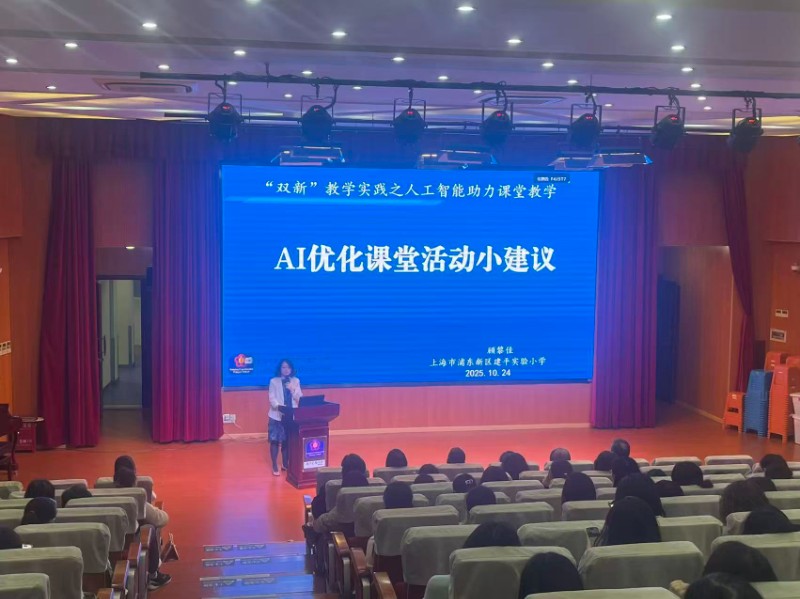 依据2025学年学校研修主题“AI赋能跨学科(项目化)教学实践”,聚焦智能化教学设计,助力教师把握人工智能在教育领域的应用,提升数字化教学能力,2025年10月24日,建平实验小学英语学科主任顾黎佳老师和课程与教学处副主任顾申慧老师为全体教师带来了一场精彩的AI赋能教学课程培训。