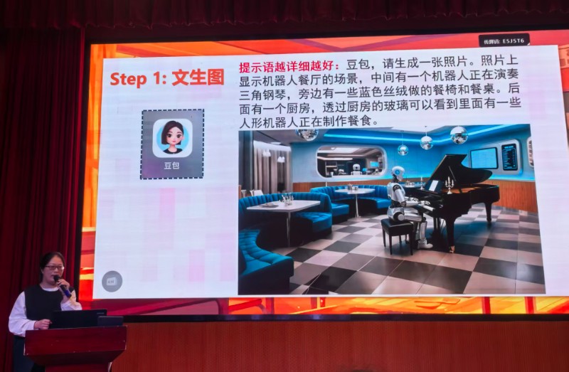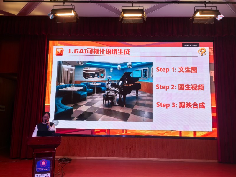 顾申慧老师的讲座以“从IPA课学GAI”为主题,深入探讨了综合实践活动与生成式人工智能的融合路径。首先,顾老师明确了IPA的定义,指出英语综合实践活动课程以学生兴趣和直接经验为基础,具备实践性、综合性、开放性的特征,采用探究、体验为主导的学习方式,旨在培养学生的核心素养,属于融合类课程。接着,顾老师详细解读了GAI,作为人工智能的一个分支,它能够通过学习大规模数据,生成逼近人类智能的文本、图像、音频、视频等内容。此外,顾老师还以“制作机器人图片”为例,展示了通过豆包AI生成图像的操作流程,为教师在教学中运用GAI生成教学素材提供了实践参考。