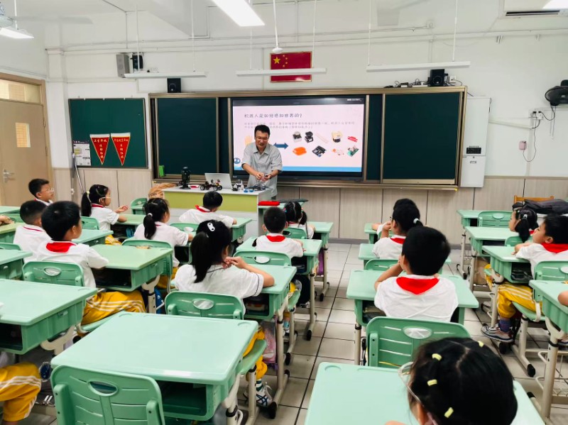 三年级共11位家长走进课堂,主题涵盖《中国互联网发展简史》《认识机器人朋友——机器人和我》《小孔里的大世界》《趣味甲骨文》《汽车的发展》《小小急救员》《人工智能启蒙课》《小芯片 大世界》《法国和法语》《仿生学与人工智能》及《小小银行家》,内容涉及科技、历史、语言、健康与金融等多个领域,拓宽学生视野,激发探索热情。