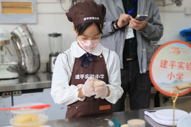 为筑牢参赛根基,孩子们利用双休日与课余时间,在专业老师的指导下系统学习糕点制作,揉面、包馅、塑形,反复打磨每一个步骤,力求精准到位。活动筹备期间,黄老师与孩子们从制定参赛方案起步,细致挑选活动服装,并专门定制统一的厨师帽与厨师服,让孩子们提前拥有“小厨神”的仪式感。