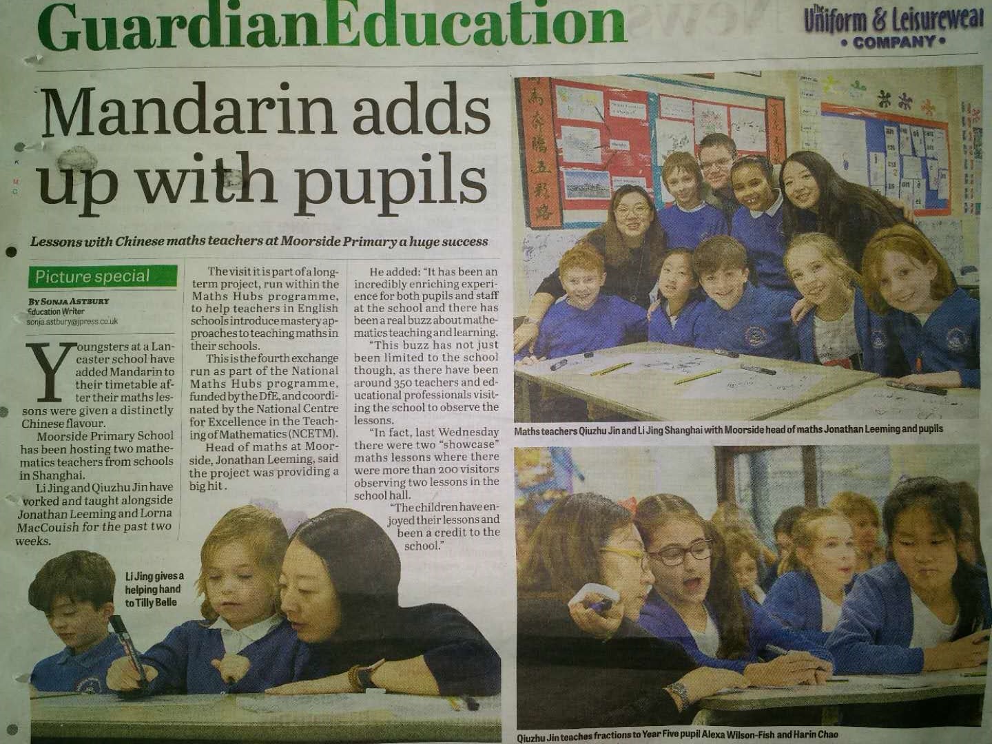 两周的中英交流期间,三位教师每天都过得充实而又忙碌,白天是全英语的教学,每天公开课的模式,与英国同行的研讨“TRG”,晚上都在反复推敲教案,反复修改课件,反复练习发音,恍惚间又回到了那个初出茅庐的青葱年代。繁重的工作、颠倒的时差、不合口味的饭菜陪伴着她们度过了一个又一个夜晚。为了准备第二天的课和教研活动,经常晚上只睡3、4个小时。经过日夜忙碌,她们化繁为简,深入浅出,帮助学生理清思路,并根据英国-孩子的特点组织语言和教学活动过程。三位老师敬业的工作态度和扎实的教学功底,更是得到了来自英国学校校长、老师们和英国教育部专员的高度评价,称她们都是非常优秀的数学老师,还问能不能移民留在他们学校呢!