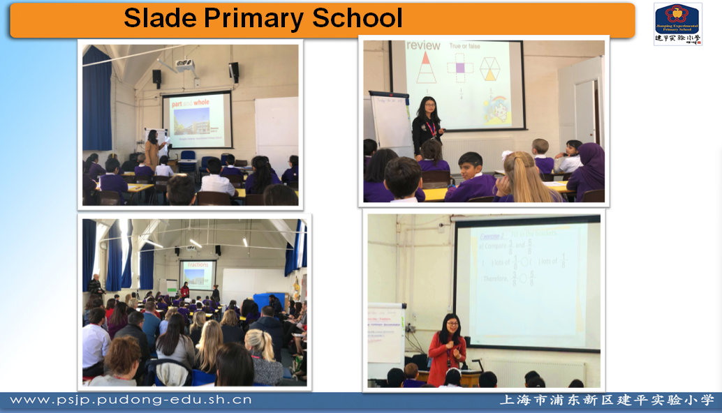 徐鸣鸣老师到访的城市是位于英国中部的伯明翰,距离伦敦约一个半小时的车程。徐老师交流的学校是Slade Primary School,座落在伯明翰的 Erdington,具有一百多年的历史,学校建筑具有维多利亚风格。虽是一所百年老校,但学校的规模比较小,大约330名学生,共30多位教师,其中一半是助教。徐老师分享了她在英国交流时的所见所闻,主要从课堂上学生的学习模式,课堂听讲习惯,听课教师的情况等几个方面进行展开。英国的老师在课堂上主要采用小组合作形式授课,学生4—6人为一组,课堂上教师抛出问题,学生自主探究,互相协作,课堂中教师个体辅导为主,与我们中国的全体授课制略有不同。访英前,徐老师原以为英国学生课堂上听课会很随意,实地考察后发现学生听课非常专注,目光紧紧盯着老师,他们自由但不散漫。课堂上,英国的孩子习惯使用“白板”,一块看似小小的板,却大有用处,学生只要将白板进行翻转,教师能够实时关注到学生课堂掌握情况。课后,徐老师从英国搭档Claire 那里得知:这是他们学校第一次进行数学课堂观摩研讨活动,听课教师来自于伯明翰周边不同的学校,有些老师为了听课专程坐船来的,有的坐火车远道而来,而英国教师听课时的专注与投入也给我们留下了深刻印象。两周的中英数学交流之行也让徐老师感受到:不管在哪里进行课堂教学,课堂应始终关注学生,课堂的教学就是为了学生的发展。