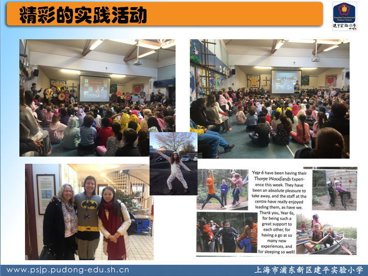 田桦老师前往的是The Bishop’s C of E and RC Primary School。学校坐落在Essex(埃塞克斯)的首府Chelmsford(切尔姆斯福德),农业发达,以耕作业为主,既能领略乡村的自然风景,又能感受城市的摩登便捷。它是埃塞克斯郡唯一一所渗透基督教、天主教的教会学校。该校的Mission Statement(使命)是Live fully(充实的生活),Laugh Often(经常的微笑),Learn Deeply(扎实的学习),Love as God loves You(爱如上帝般爱你)和Let Your Light Shine!(让你光芒闪耀)。田老师围绕着这五点,详细描述了英国小学多彩的校园环境、丰富的社团课程、精彩的实践活动、严谨的教学态度、温暖的人文关怀……生动有趣的讲解、图文并茂的PPT,带领大家走入英国小学,犹如身临其境般引人入胜。大家不禁感叹,英国小学无论是在学校的环境布置、班级分布上,还是在学生的课程设置、活动组织中,都与中国小学有完全不同的体验。
