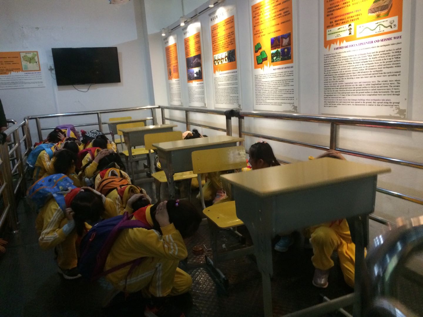 前面两个行程让小朋友们深受教育的同时,心情也较为沉重。好在马上在地质科普馆观看了各种大自然的宝藏——矿石,而且也观看了《武松打虎》的皮影戏。最为有收获的是体验了一场5.5级的地震,学会了在地震来临时如何自救。终于到了期盼许久的聚餐时间。小朋友们以小组为单位,坐在草地上,沐浴在午后暖暖的阳光下,有说有笑地享用午餐。午后的活动更加精彩,不管是百玩不厌的写王字游戏,还是喂小羊、挖土豆活动,都让往日忙碌于功课中的小朋友彻底放松了一回!