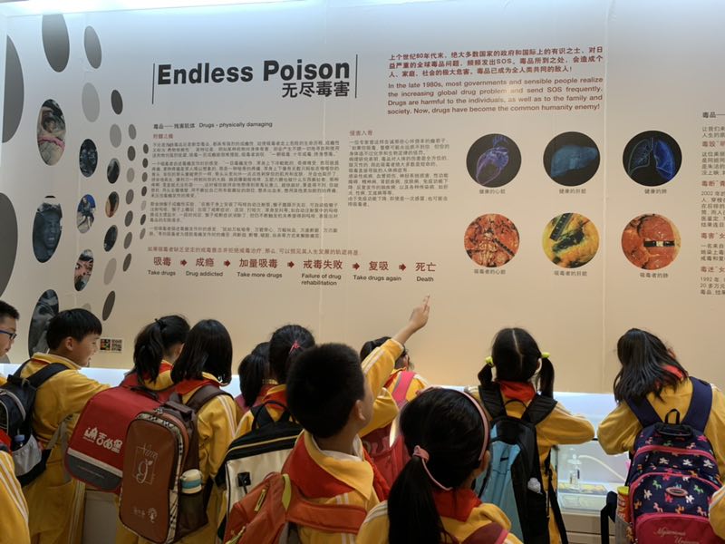 接着同学们来到了禁毒馆。宣传墙上的美丽妖艳的邪恶之花,琳琳种种的毒品分类,毒品残害下的一个个悲剧,都让小朋友们咂舌不已,定将“珍爱生命,远离毒品” 铭记于心。