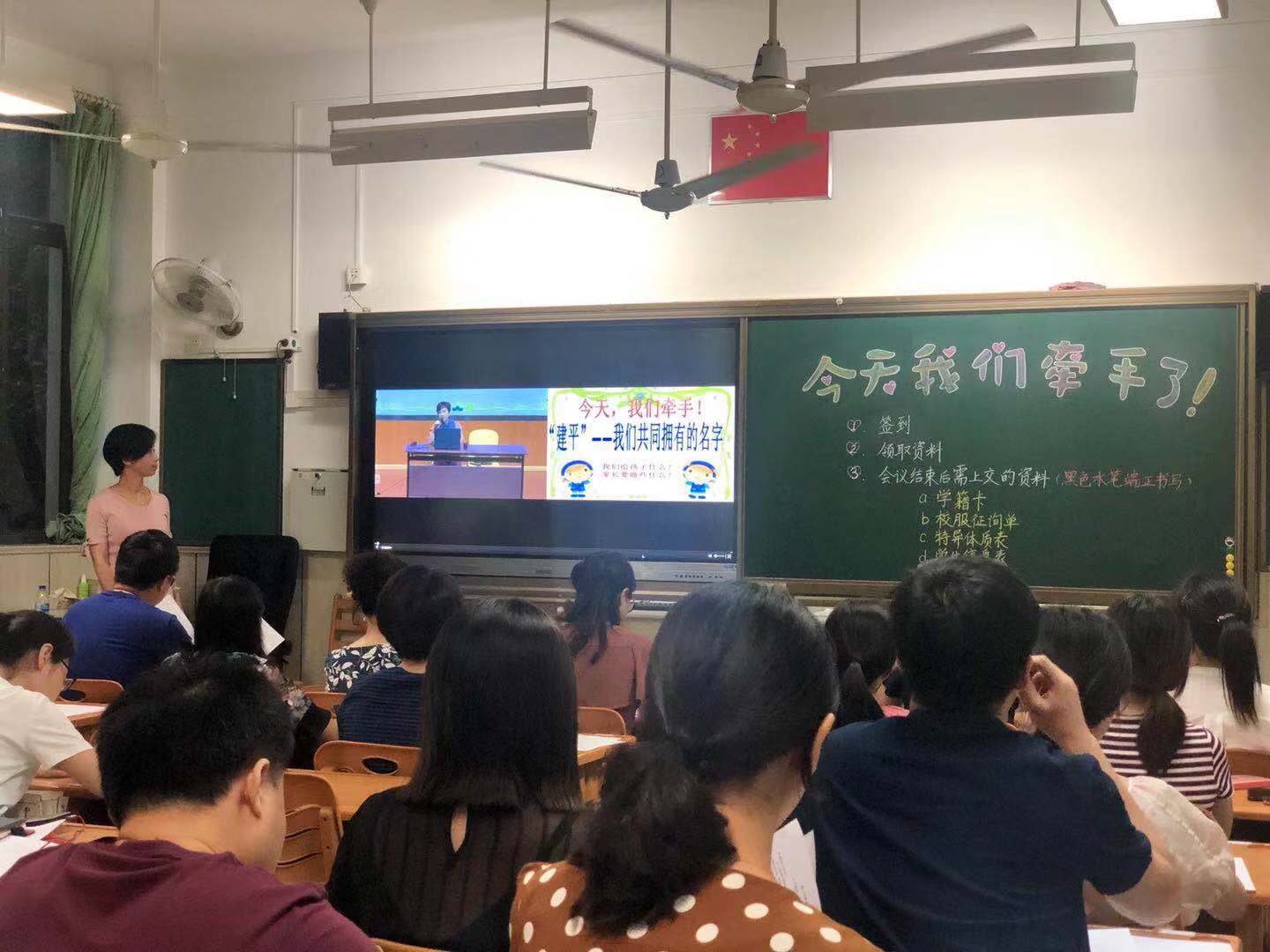 当天的新生家长会分为两个议程:校长讲话和各班的学前准备会。