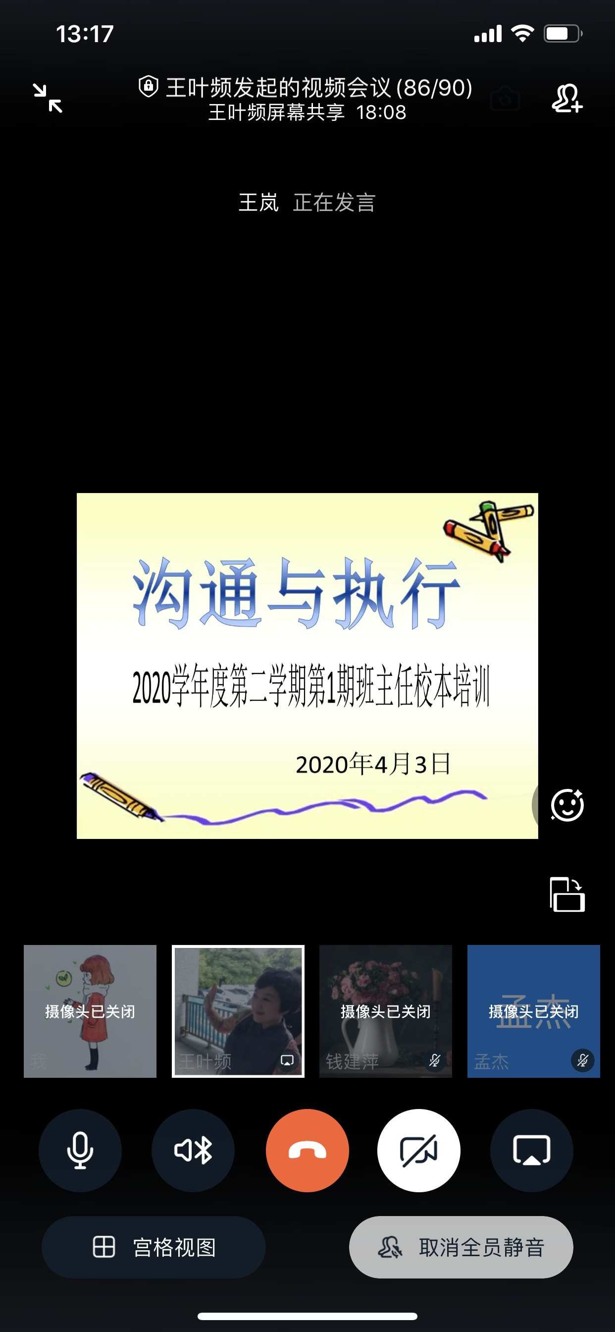 2020年4月3日下午1:00,在王叶频副校长的主持下, 2019学年度第二学期第1期班主任校本培训在线上如约而至。
